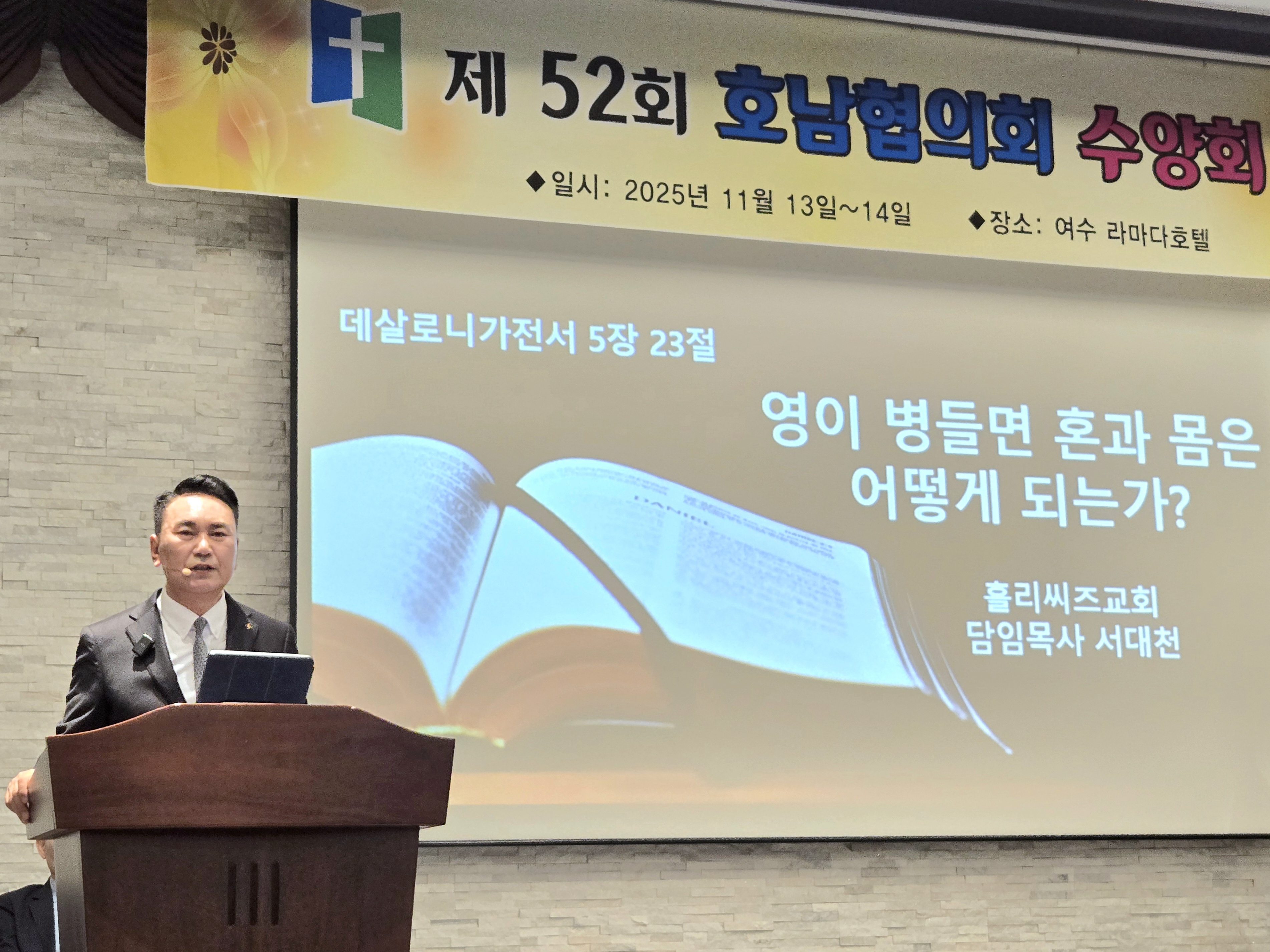 Á¦52ȸ È£³²ÇùÀÇȸ ¼ö¾çȸ°¡ 11¿ù 13ÀϺÎÅÍ 14ÀϱîÁö ÀÌÆ²°£ ¿©¼ö¶ó¸¶´ÙÈ£ÅÚ¿¡¼ "ÁÖ ¾È¿¡¼ Çϳª µÇ¾î"¶ó´Â ÁÖÁ¦·Î °³ÃֵƴÙ. À̹ø ¼ö¾çȸ´Â ¼¿ï Ȧ¸®¾¾Áî ±³È¸ ¼´ëõ ¸ñ»ç, È£³² ÇùÀÇȸ ±è¿ë´ë ¸ñ»ç∙¹Ú¼º¼ö ¸ñ»ç∙¹èÁ¤È¯ ¸ñ»ç∙ÃÖ¼ºÀº ¸ñ»ç°¡ ¸»¾¸À» ÀüÇÏ¿´À¸¸ç È£³² Áö¿ª ¸ñȸÀÚµéÀÌ ÇÑÀÚ¸®¿¡ ¸ð¿© ¿µÀû ȸº¹°ú ±³Á¦ÀÇ ½Ã°£À» °¡Á³´Ù.