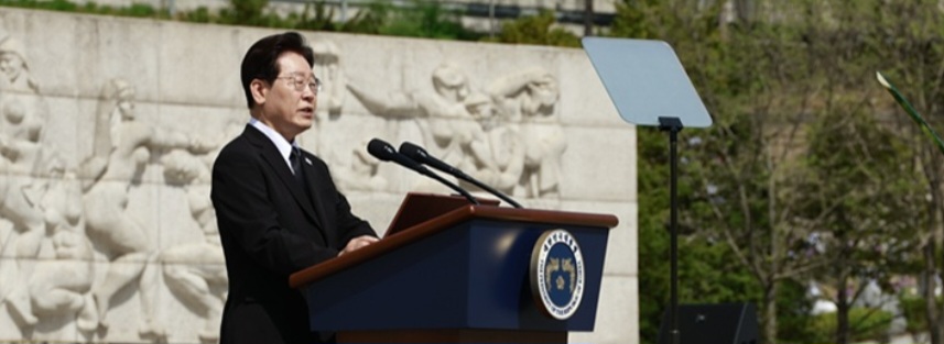 ¼­¿ï °­ºÏ±¸ 4¡¤19 ±¹¸³¹¦Áö¿¡¼­ 19ÀÏ ¿­¸° 4¡¤19Çõ¸í 66Áֳ⠱â³ä½Ä¿¡ ÀÌÀç¸í ´ëÅë·ÉÀ» ºñ·ÔÇÑ ÁÖ¿ä ÀλçµéÀÌ Âü¼®ÇØ ¹ÎÁÖÁÖÀÇ Á¤½ÅÀ» ±â·È´Ù.