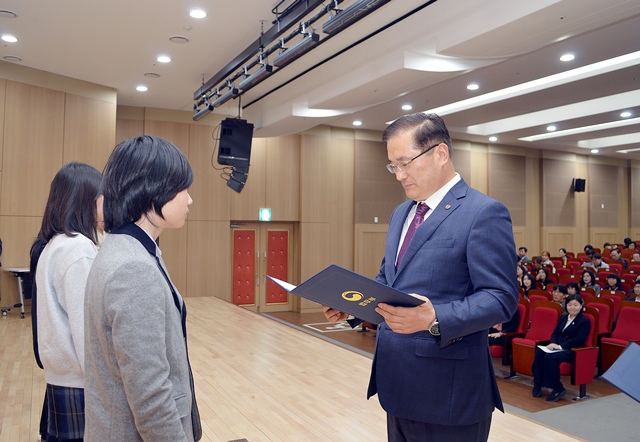 ¾Æ¿ï·¯ ¡°¿À´Ã ǥâÀå°ú °¨»çÆÐ¸¦ ¹ÞÀ¸½Ã´Â ÈǸ¢ÇÑ À§¿ø´Ôµé°ú ÀåÇбÝÀ» ¹Þ´Â ¸ð¹ü Çлý¿¡°Ô Ưº°ÇÑ °¨»ç¿Í ÃàÇÏÀÇ ¸»¾¸À» ÀüÇÏ´Ù¡±°í °Ý·Á»ç¸¦ ÅëÇØ ÀüÇß´Ù.