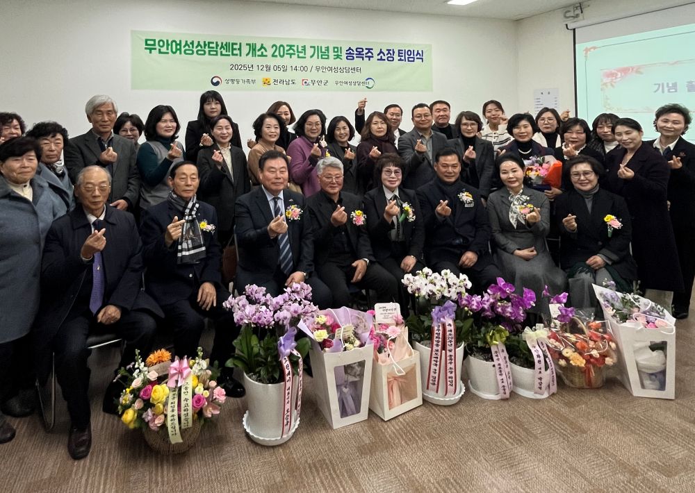 ¹«¾È¿©¼º»ó´ã¼¾ÅÍ ¼ÒÀå ¼Û¿ÁÁÖ´Â ÅðÀӻ縦 ÅëÇØ "Áö³ 20³â°£ ¹«¾È¿©¼º»ó´ã¼¾ÅͰ¡ ¿©¼º À뱂 ÁõÁø°ú ¼ºÆø·Â ÇÇÇØÀÚ Áö¿øÀ» À§ÇØ °É¾î¿Â ±æÀº °áÄÚ È¥ÀÚ°¡ ¾Æ´Ï¾ú±â¿¡ °¡´ÉÇß´Ù"¸ç, "¿À´Ã ÀÌ ÀÚ¸®¿¡¼ ¸¹Àº ºÐµéÀÇ °Ý·Á¿Í ÃàÇϸ¦ ¹ÞÀ¸¸ç ÅðÀÓÇÏ°Ô µÇ¾î ¸Å¿ì °¨°Ý½º·´´Ù. ¾ÕÀ¸·Îµµ ¹«¾È¿©¼º»ó´ã¼¾ÅͰ¡ Áö¿ª»çȸÀÇ ¼ÒÁßÇÑ µîºÒÀÌ µÇ¾îÁֱ⸦ ±â¿øÇÑ´Ù"°í ¹àÇû´Ù.